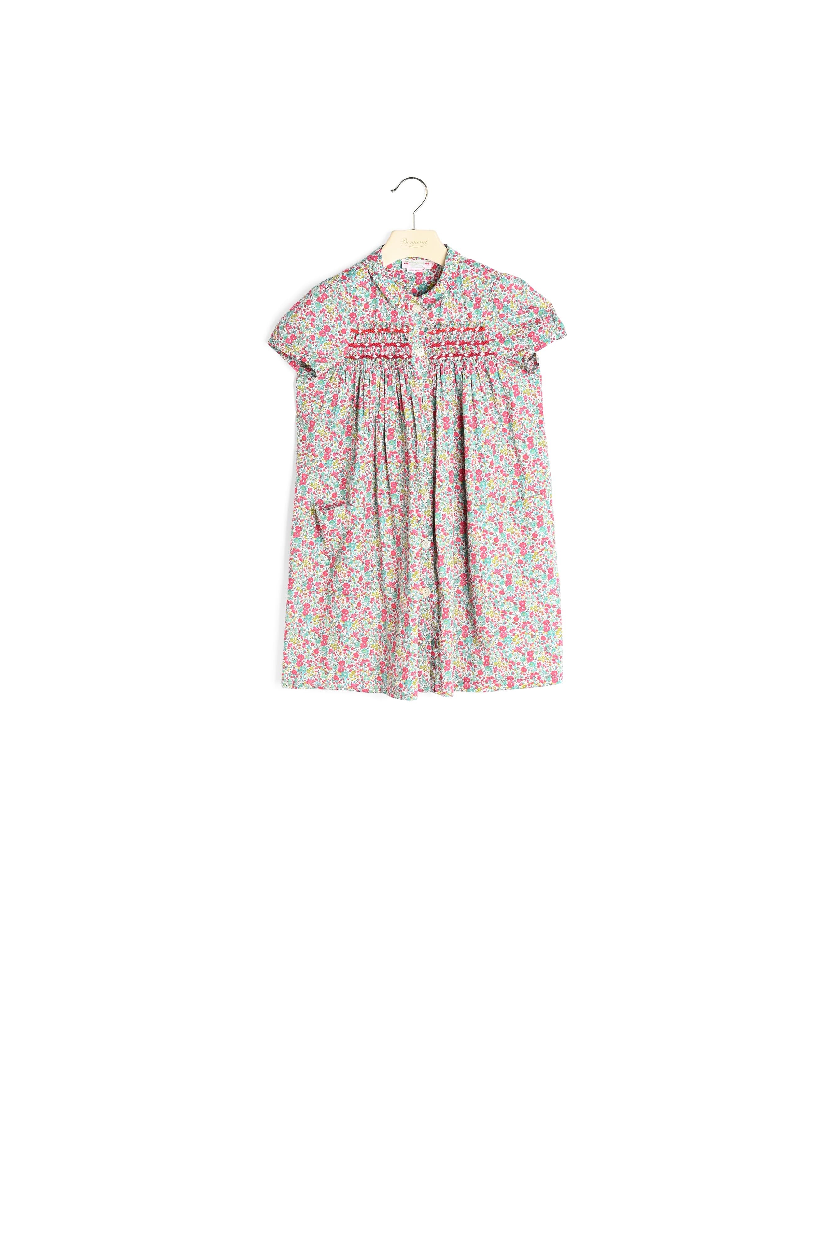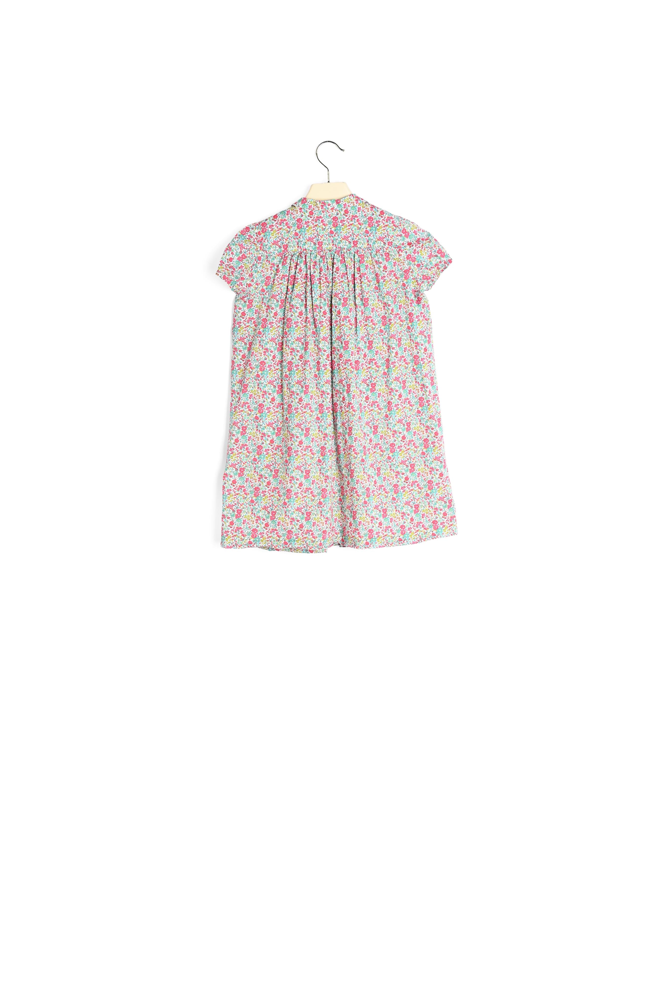 Cette robe à manches courtes pour fille Candice est pleine de fraîcheur avec son tissu Liberty multicolore. Le buste est rehaussé de smocks, et le haut du dos de fronces.