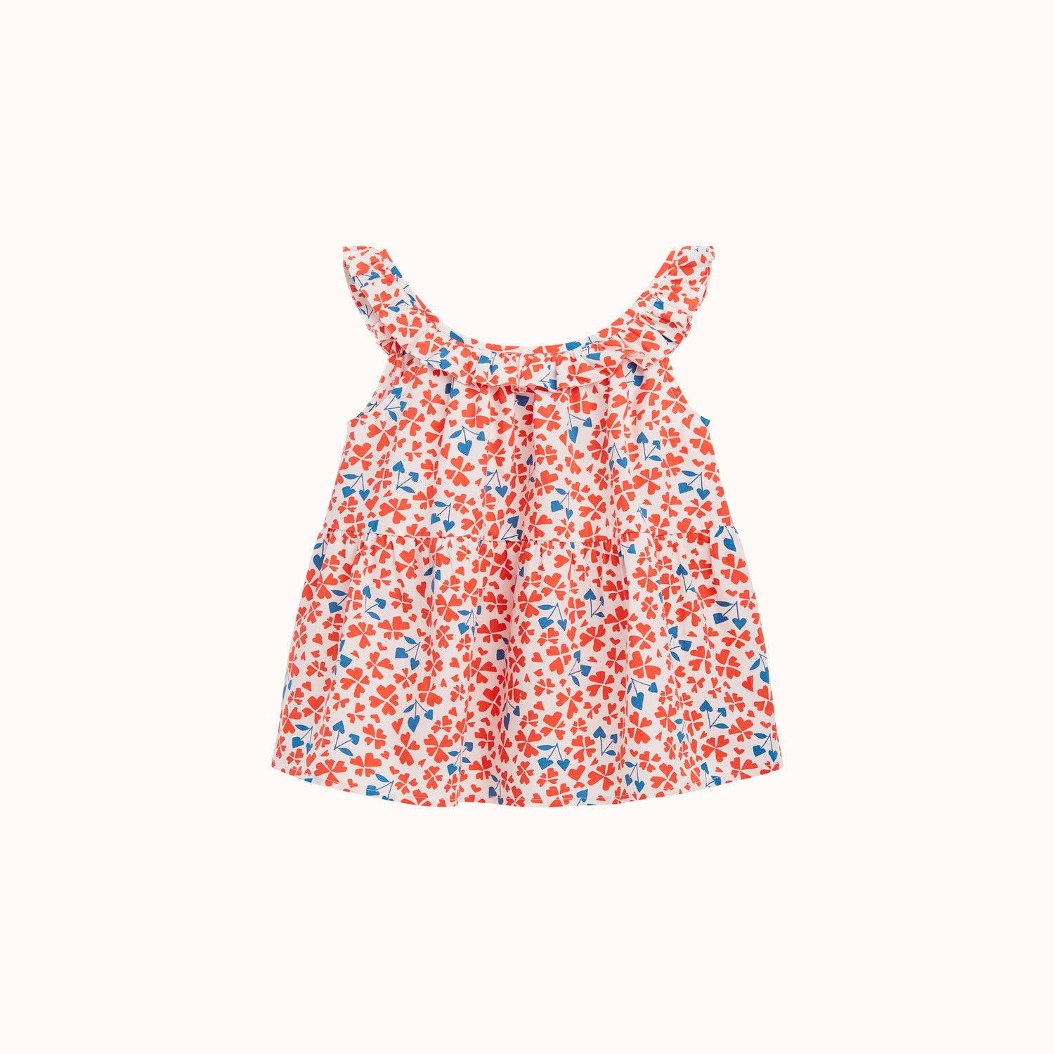 On ne résiste pas aux motifs de cette blouse Ninili aux accents rétro. Issu de la collection « En toute liberté », ce modèle sans manches est mis en valeur par un décolleté rond volanté souligné d'un petit bouton, une coupe ample et un imprimé pop et coloré.