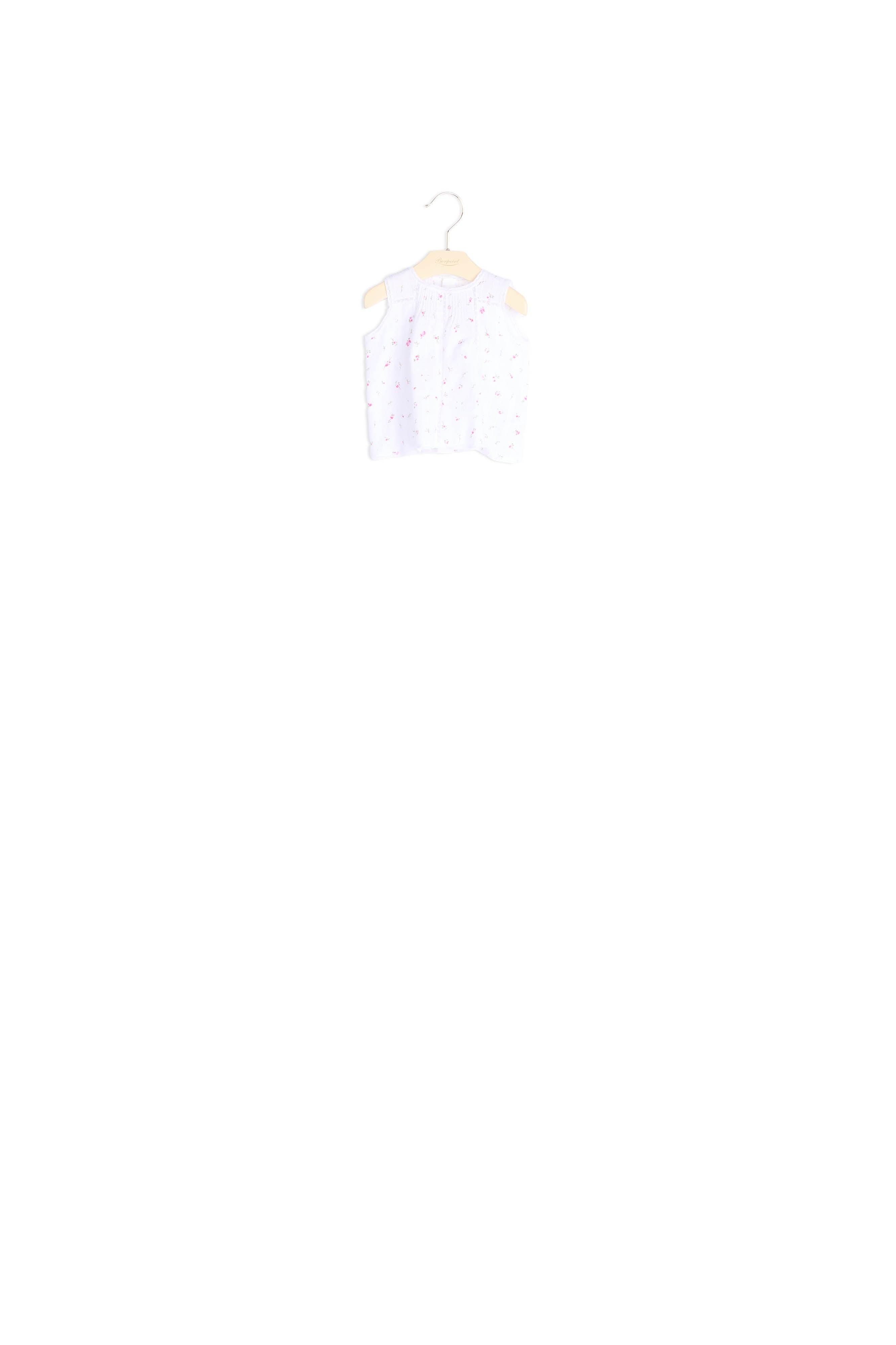 Le top Acacia pour bébé rivalise de raffinement avec ses finitions en dentelle de Calais. En voile léger, il charme par son imprimé floral et ses plumetis.