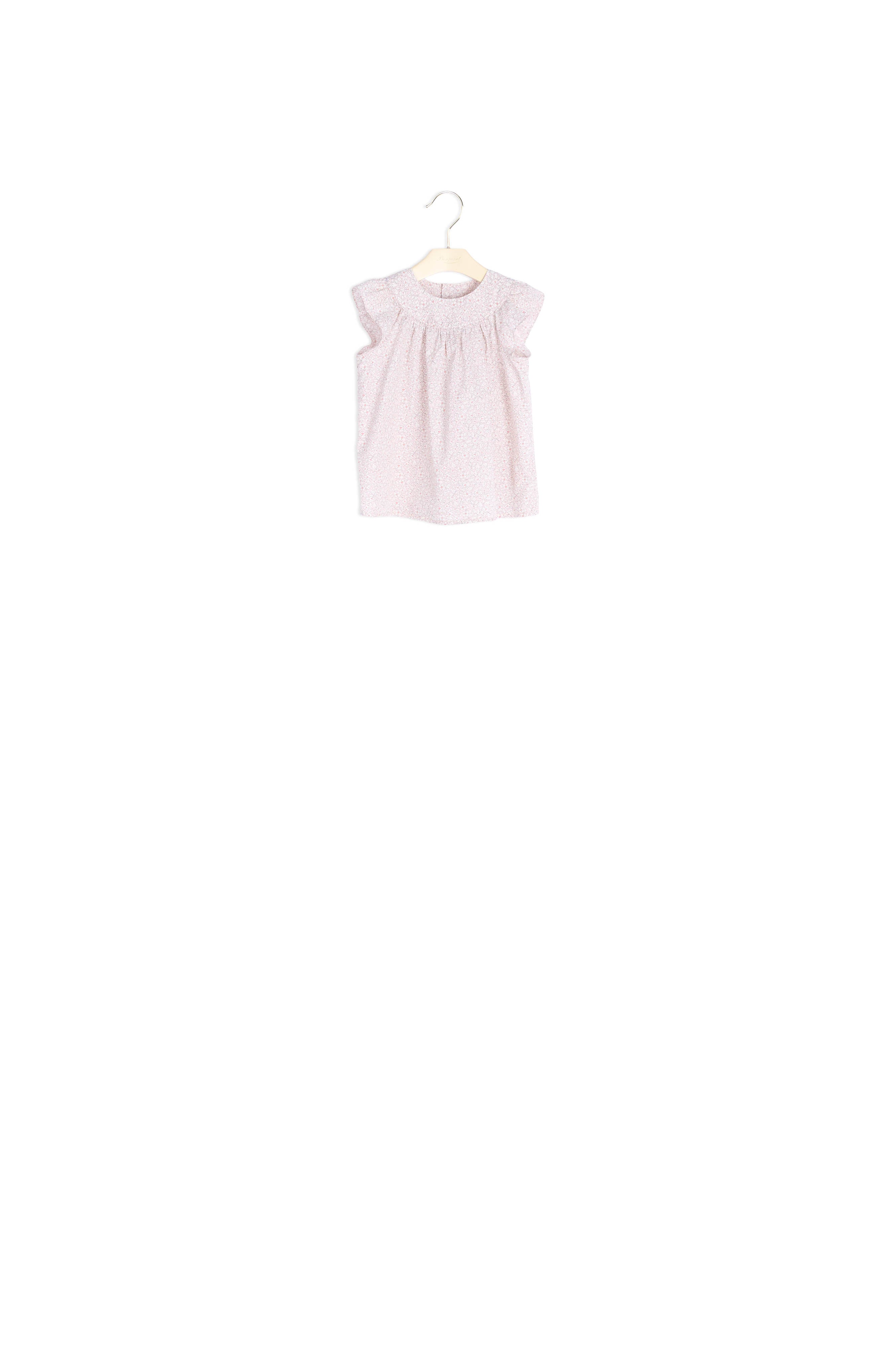 La blouse Lala en coton est une pièce tout en légèreté. On aime son imprimé à fleurs rose pâle et les volants au niveau des épaules. Pour composer un ensemble pastel adorable sur bébé, on l'associe à un jean clair.