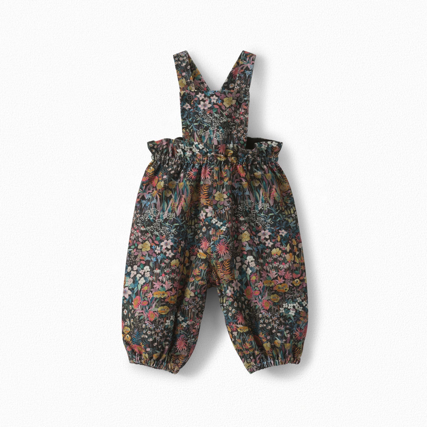La salopette pour bébé Papaye en velours de coton milleraies se décline dans un tissu Liberty fleuri, phare cette saison. Cette salopette présente un dos croisé et une taille smockée pour plus de confort.