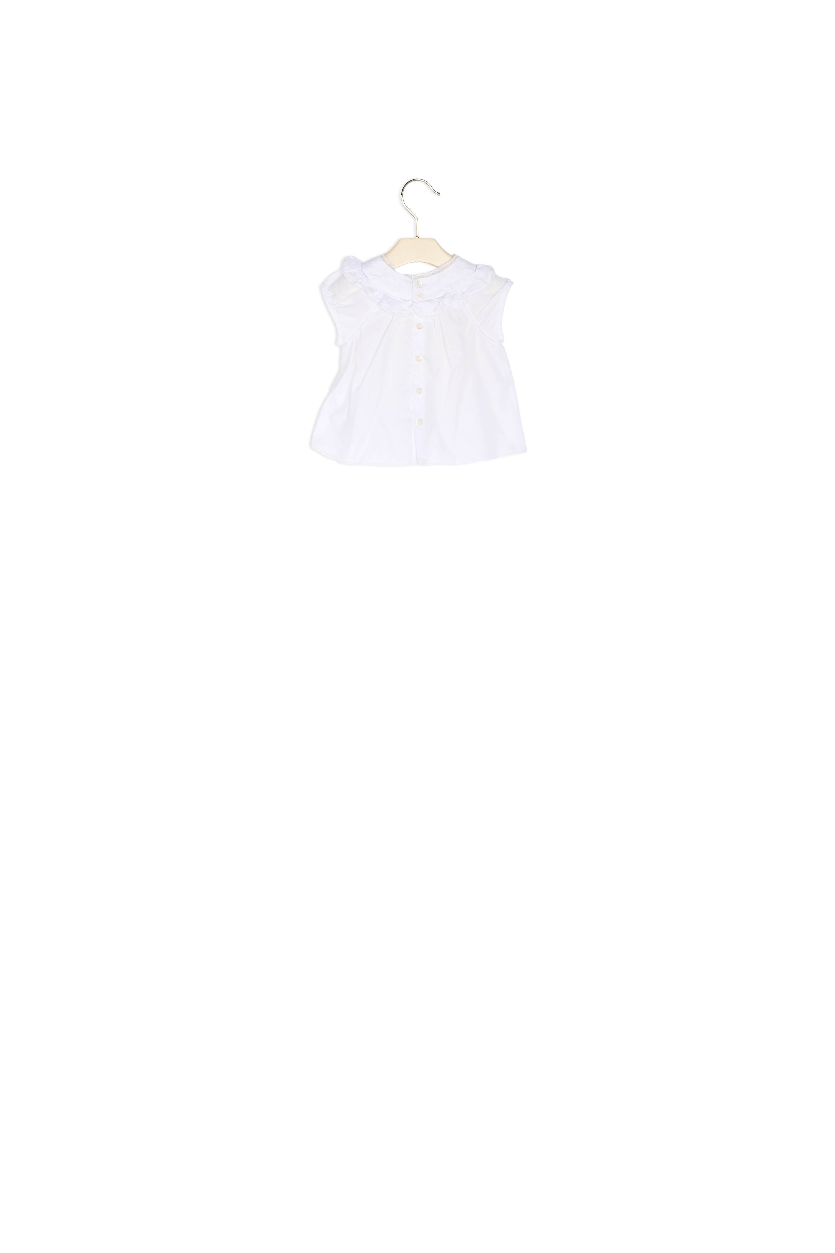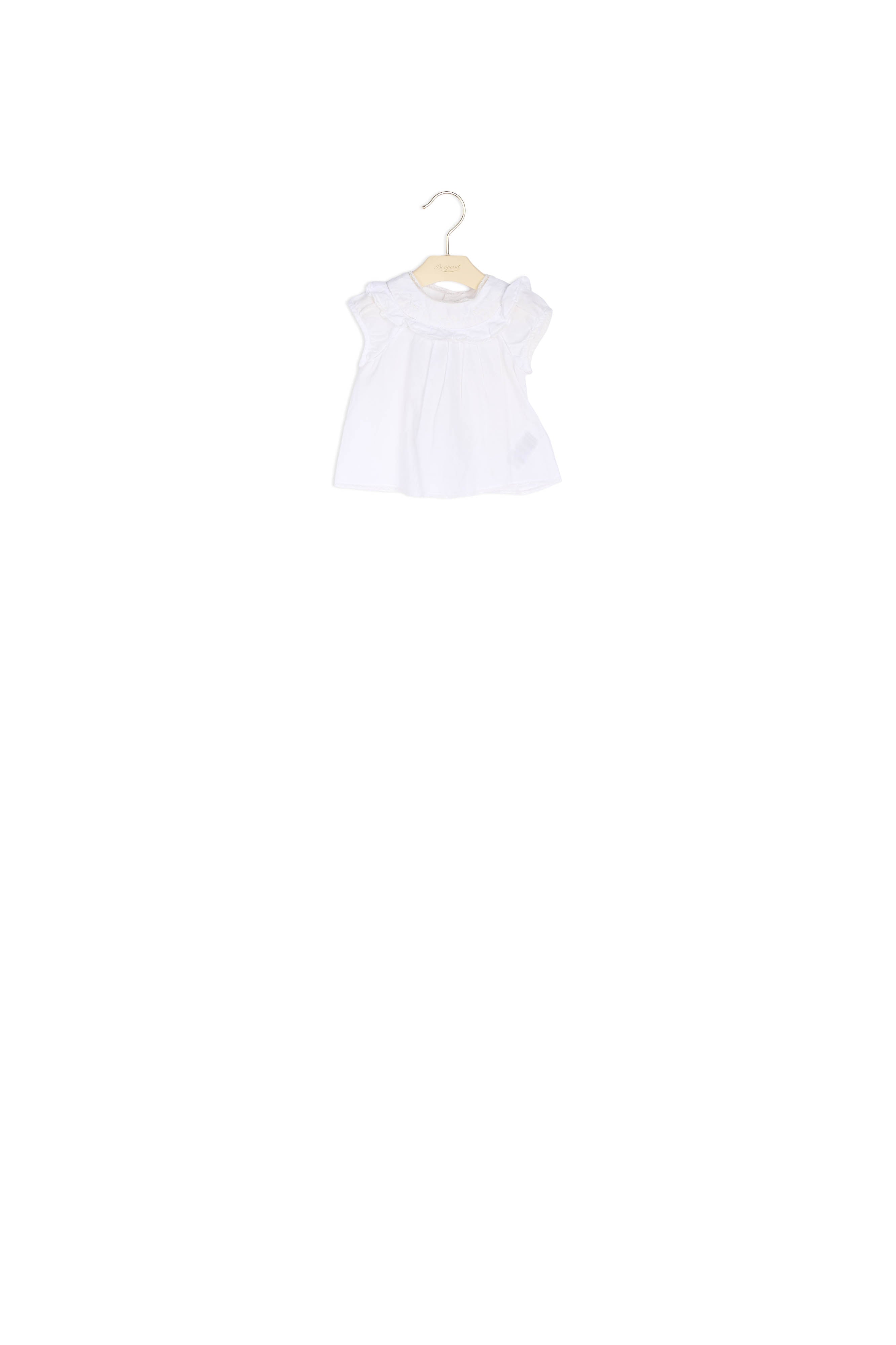 La blouse Line pour bébé cultive une allure rétro avec ses détails brodés et ses volants autour de l'encolure. Le boutonnage intégral au dos aide à l'habillage des plus petits. Voile de coton. Col rond avec dentelle de Calais. Manches courtes.
