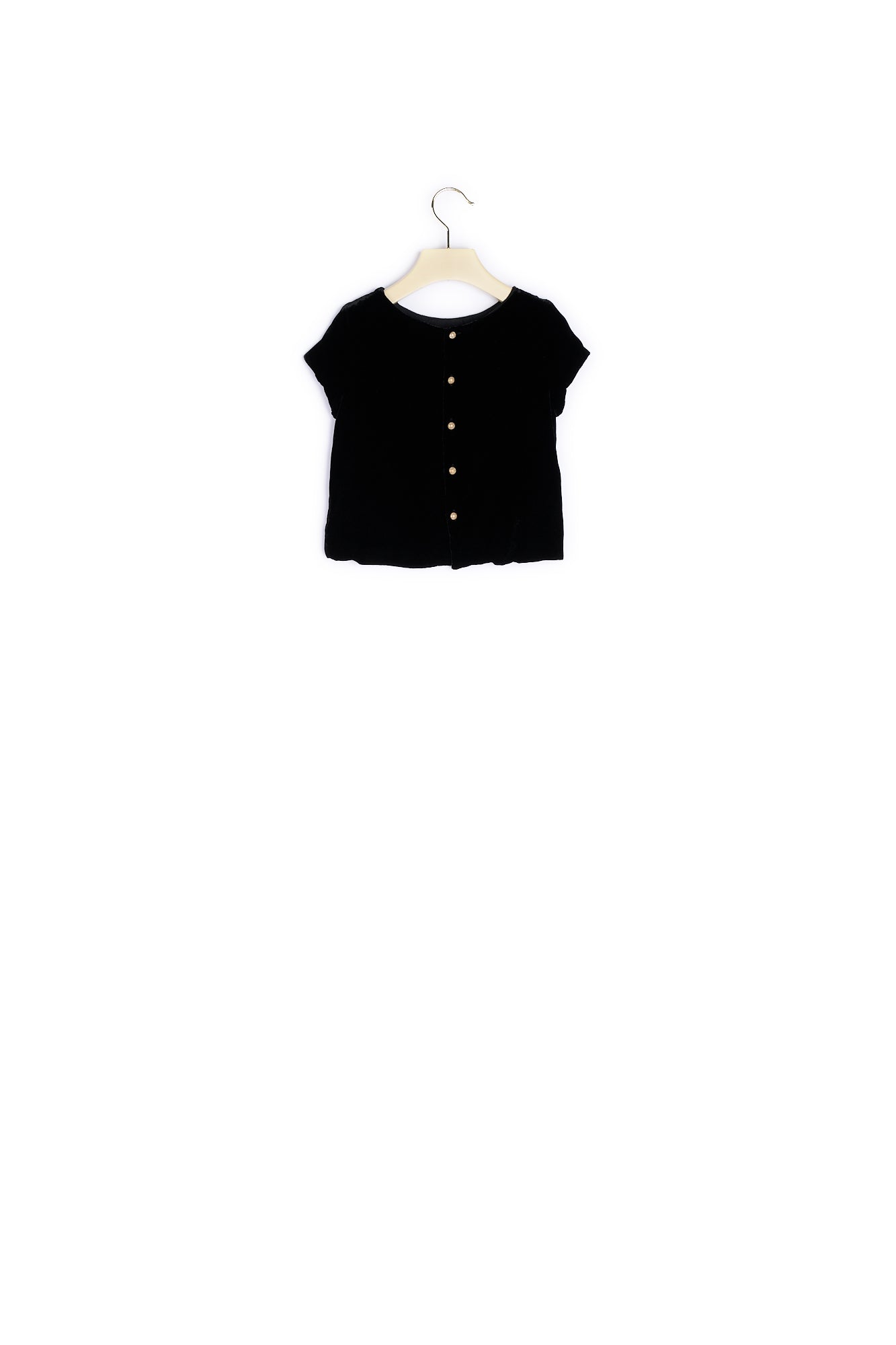 Cette blouse Beauté se décline dans un design moderne et raffiné. Son délicat velours de soie noir se révèle dans des lignes épurées et les boutons au dos rehaussent l'ensemble d'une note d'élégance supplémentaire. On l'associe à un pantalon tailoring.