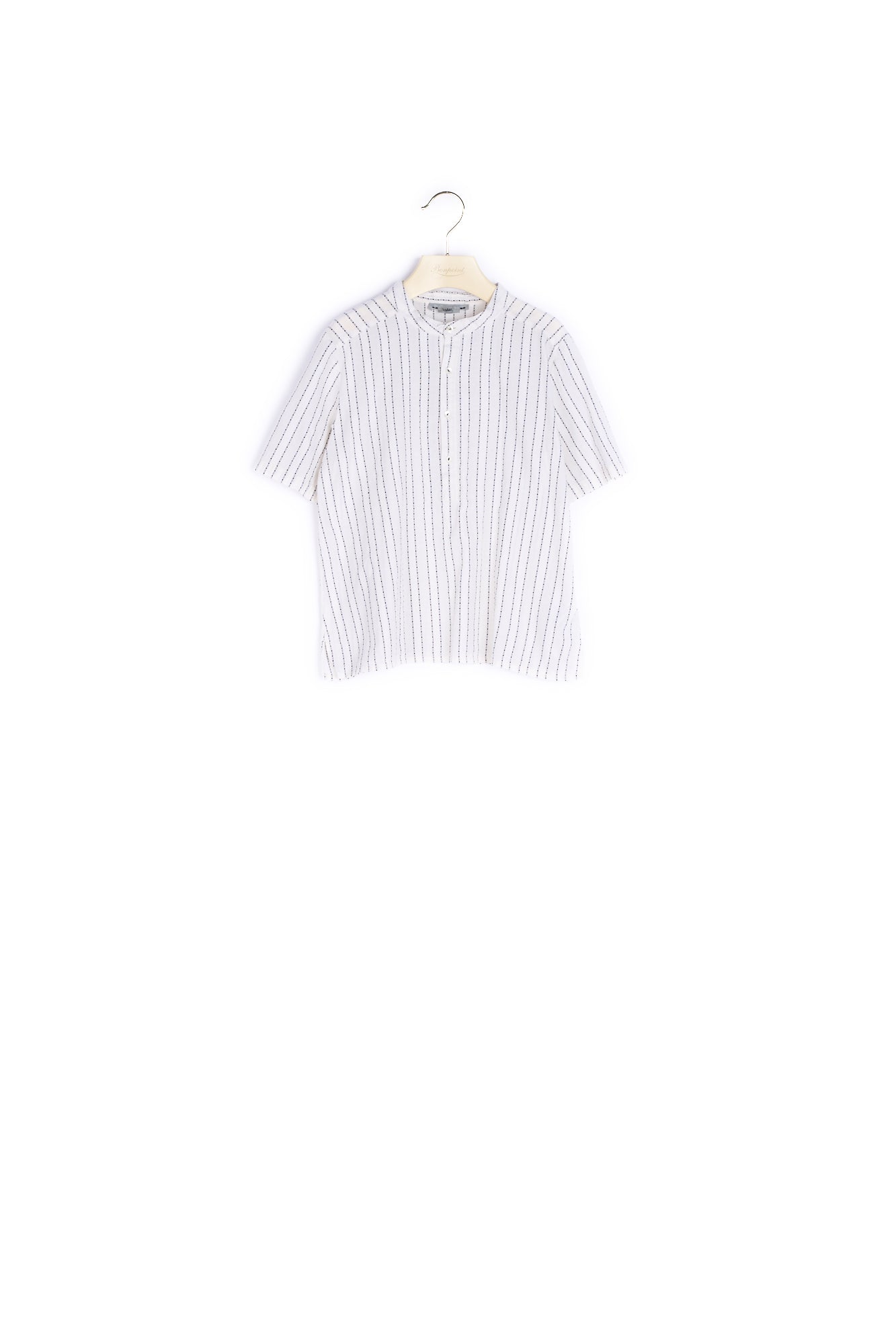 L'élégance de cette chemise Cesar à manches courtes est soulignée par une coupe droite et des rayures bicolores verticales qui mettent en valeur la qualité de tissage du coton jacquard. Boutonnée devant, cette magnifique chemise rayée est munie d'un col mao.
