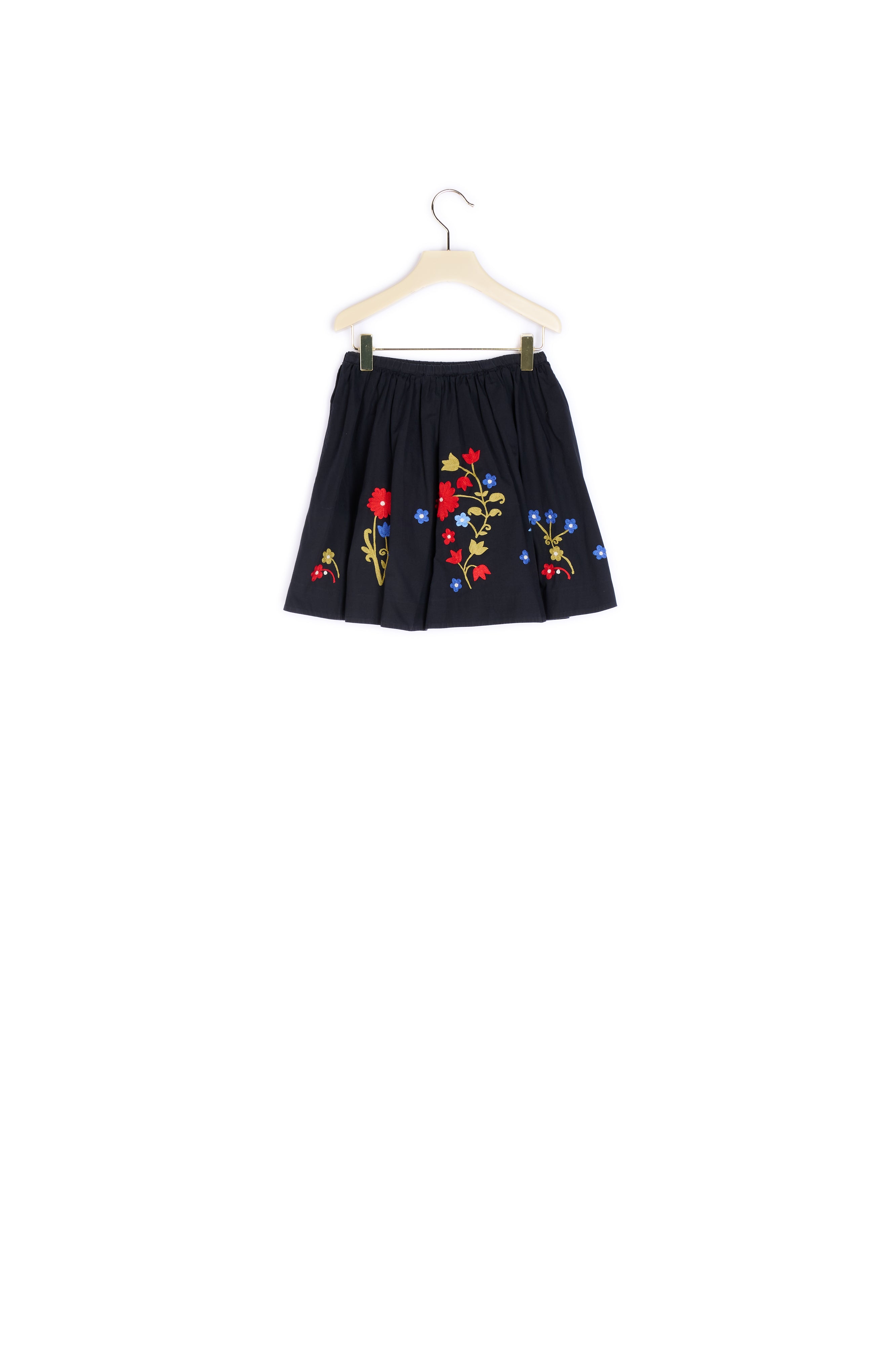 Jupe en popeline de coton brodée de fleurs. Collection Fille Été 2018.