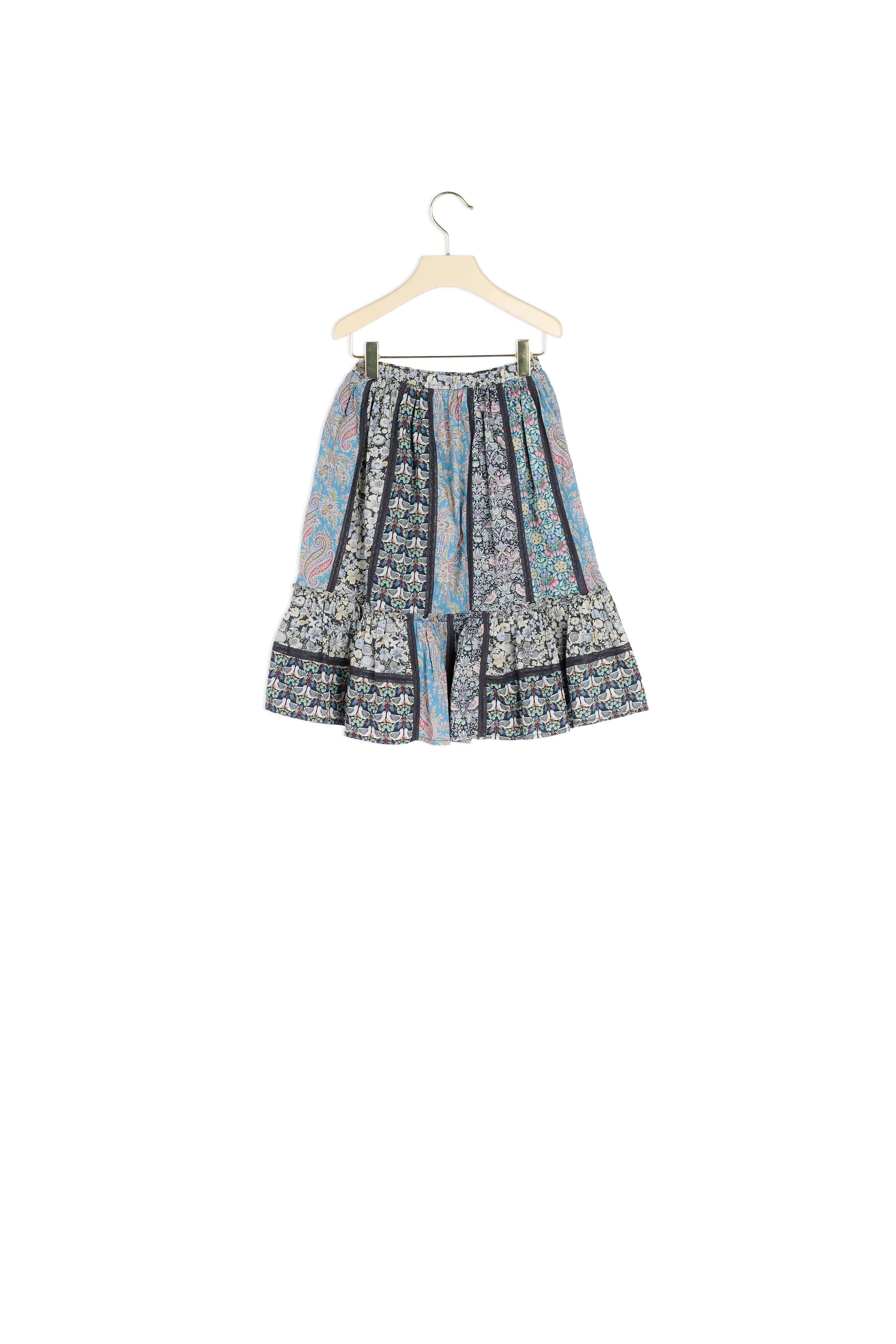 Avec ses accents bohèmes, cette ravissante jupe longue Noellia se caractérise par un patchwork d'imprimés Liberty. Dotée d'une taille élastiquée, elle est subtilement froncée et résolument colorée. Cette pièce assurera une allure décontractée portée avec un cardigan en crochet.