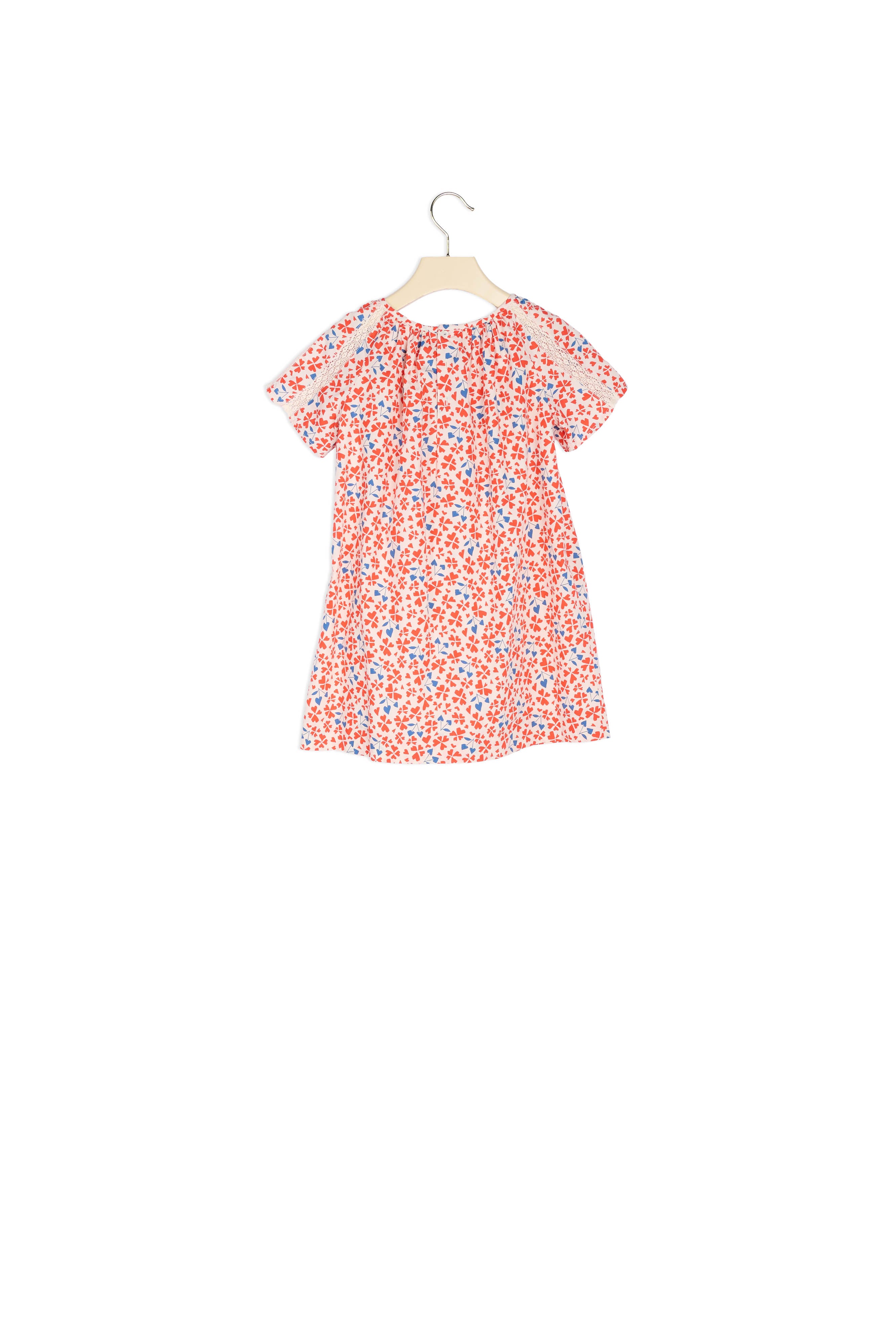 Cette robe pour fille Natacha en popeline de coton se dévoile dans une coupe évasée confortable. Ornée d'un adorable motif coloré, elle se démarque par ses inserts en dentelle au niveau de ses manches courtes. Une jolie paire de ballerines en cuir vient compléter la tenue.